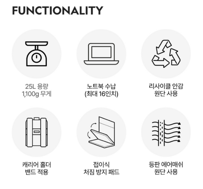 최근 제가 구매한 내셔널지오그래픽 25L 백팩은 노트북은 물론 두꺼운 책, 물병, 운동화까지 수납할 수 있어